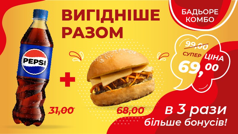 Pepsi+бургер – вигідніше разом!
